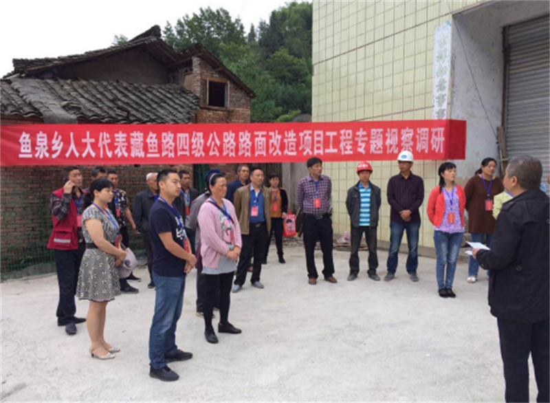 近日,天全縣魚泉鄉(xiāng)人大代表對雅安交建集團路橋公司承建的天全縣藏魚路(藏魚橋至魚泉鄉(xiāng))四級公路路面改造工程項目進行專題視察調研。調研小組首先參觀了該項目施工現(xiàn)場,隨后聽取公司技術負責人黃懷璟對工程概況、工程進度、完成工程量以及近期工程計劃的詳細匯報。目前,該項目已完成主體工程,剩余路緣石、水溝、波形護欄、院壩與公路的銜接等項目正在加快推進,下一步項目部將按照施工計劃保質保量完成各項任務。