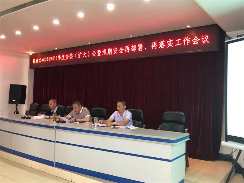 2019年7月23日,蜀通公司黨委副書記、總經(jīng)理、安委會主任余輝在公司機關會議室主持召開了2019年三季度安委(擴大)會暨汛期安全工作再部署、再落實工作會議。公司安委會成員及各基層安全二、三責任人共計40人參加此次會議。