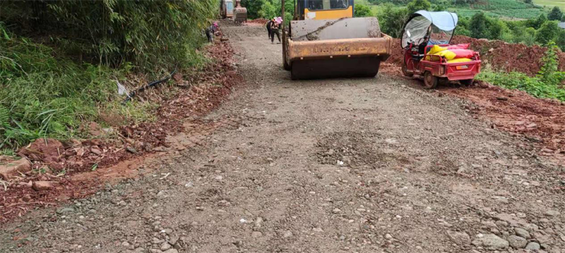 在路橋公司承接的“世界銀行貸款蘆山地震災(zāi)后恢復重建天全縣始陽至新華農(nóng)村公路”項目天全縣新華鄉(xiāng)柏樹村至永安村段,其村道路面結(jié)構(gòu)層差,路基窄,雨水多,晴通雨阻,對本地農(nóng)產(chǎn)品外運造成很大困擾,嚴重影響了民眾的生產(chǎn)生活。為積極響應(yīng)市委市政府加快雅安市“四好農(nóng)村路”的部署安排,解決當?shù)卮迕癯鲂须y、本土農(nóng)產(chǎn)品外銷滯后等問題,路橋公司天全項目部主動作為,在推進項目部主體建設(shè)的同時,堅持以問題為導向,采用“始新路”施工現(xiàn)場自拌水穩(wěn)料,為村民鋪設(shè)了一段長臨時水穩(wěn)路面,方便廣大村民順利出行,促進當?shù)剞r(nóng)產(chǎn)品物資交流。