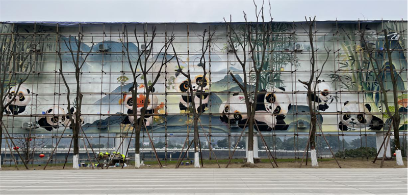 北緯30度公園LED大屏美化項目繪圖緊緊圍繞“川藏鐵路第一城,綠色發(fā)展示范市”總體目標,采用簡約又富有內(nèi)涵的國畫水墨風格,將9只形態(tài)生動的大熊貓與綠意盎然的草地樹林、婉轉流長的河流江水、蜿蜒曲折的道路完美融合,不僅展現(xiàn)了大美雅安的人文景觀和自然風光,更樹立了人與自然和諧共處的生態(tài)理念。是雅安交建集團深入學習貫徹黨的二十大精神,全面落實省委十二屆二次全會、市委五屆二次全會部署,嚴格按照2022年12月20日市委書記李酌在調(diào)研雅州大道沿線片區(qū)城市更新改造項目施工現(xiàn)場的有關指示要求及市委宣傳部的工作安排,奮力推動文明城市創(chuàng)建全面提質(zhì)提速提效的有力舉措之一,將有效助力文旅融合、提升城市吸引力。
