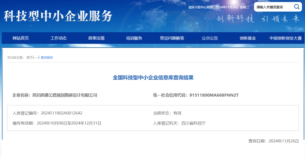 近日,四川省科學(xué)技術(shù)廳公布了本年度第五批入庫(kù)科技型中小企業(yè)名單,雅安交建集團(tuán)四川西康公路規(guī)劃勘察設(shè)計(jì)有限公司榮獲“國(guó)家級(jí)科技型中小企業(yè)”稱號(hào),標(biāo)志著公司在科技創(chuàng)新道路上邁向了新的高度。