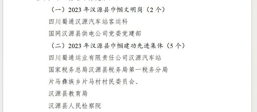 在“三八”國(guó)際婦女節(jié)來臨之際,雅安交建集團(tuán)蜀通漢源汽車站被漢源縣婦聯(lián)評(píng)為“2023年漢源縣巾幗建工先進(jìn)集體”、“2023年漢源縣巾幗文明崗”。
