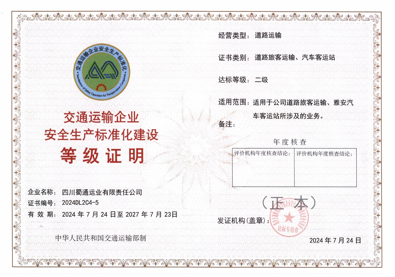 喜訊!雅安交建集團蜀通公司榮獲“安全生產標準化二級企業(yè)”證書