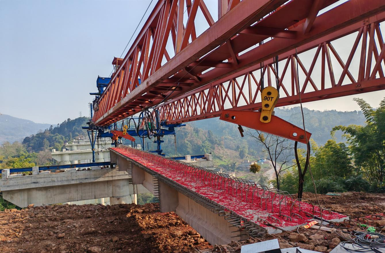 隴西河大橋全橋長370.96米,全橋分3聯,共90片T梁。為推進項目建設,三標段項目部嚴格落實精細化管理要求,抓環(huán)保、搶進度、倒排工期、分解產值、調整關鍵線路,優(yōu)化施工方法、調整作業(yè)順序,加快路基施工進度,確保T梁運輸線路順暢通行。同時,全方位落實安全風險管控措施,精細化管理架橋機拼裝,科學合理調配人力、設備和資源,保障T梁安裝施工如期開展。