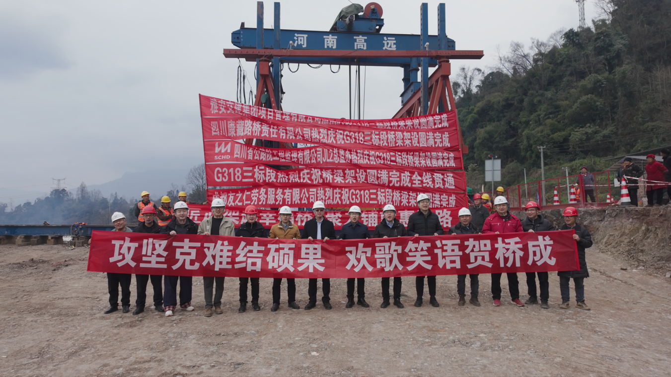 1月30日,隨著騎山廟大橋最后一片T梁精準(zhǔn)架設(shè)完成,國(guó)道318線名山區(qū)黑竹(成都界)至雨城區(qū)多營(yíng)段改建工程三標(biāo)段實(shí)現(xiàn)全線貫通。