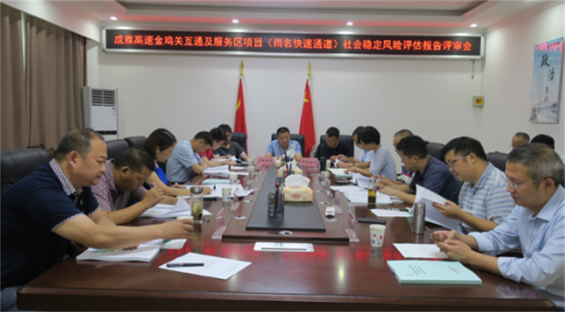 2018年7月6日下午,雅安市交通運輸局在交建集團四樓會議室組織召開了《成雅高速金雞關(guān)互通及服務(wù)區(qū)項目(雨名快速通道)社會穩(wěn)定風(fēng)險評估報告》(以下簡稱《報告》)專家評審會。雨城區(qū)政府、名山區(qū)政府、經(jīng)開區(qū)管委會、市委維穩(wěn)辦、市農(nóng)業(yè)局、市林業(yè)局、市住建局、市環(huán)保局、市水務(wù)局、市國土局、雅安交建集團,相關(guān)鄉(xiāng)鎮(zhèn)(街道)等相關(guān)部門和單位參與會議。與會專家組詳細審閱了相關(guān)文件及資料,聽取了編制單位和相關(guān)單位對該項目的情況介紹。