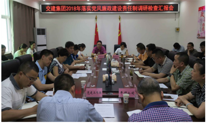 調(diào)研組一行首先聽取了交建集團(tuán)2018年落實(shí)黨風(fēng)廉政建設(shè)責(zé)任制工作情況匯報(bào)。交建集團(tuán)黨委書記、董事長漆家華指出,交建集團(tuán)組建以來,堅(jiān)持把黨風(fēng)廉潔建設(shè)貫穿于生產(chǎn)經(jīng)營活動(dòng)中,攻堅(jiān)克難,跳起摸高,出色完成市委市政府安排的重點(diǎn)工作,搶抓機(jī)遇,乘勢而上,積極謀求企業(yè)自身發(fā)展,黨風(fēng)廉政建設(shè)持續(xù)加強(qiáng),為企業(yè)改革發(fā)展提供了堅(jiān)強(qiáng)的紀(jì)律保障。