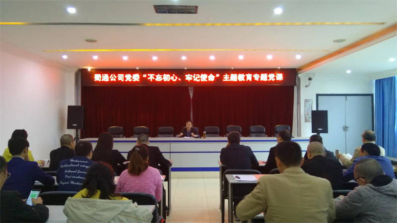 10月24日,公司黨委“不忘初心、牢記使命”主題教育專題黨課在蜀通公司機(jī)關(guān)大會(huì)議室舉行,公司黨委書記吳誠向蜀通公司、公交公司黨員講專題黨課。公司黨支部書記、和黨員代表共35人參加。