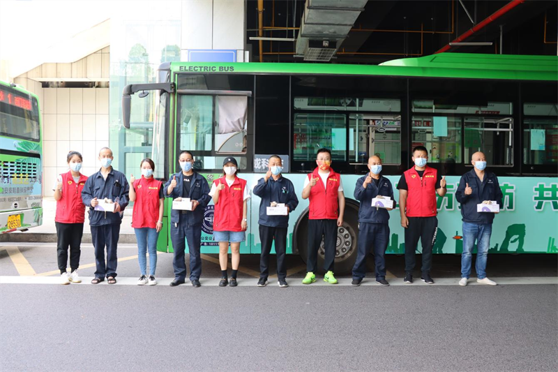 最后,青年團(tuán)員們帶著親手制作的40份防疫香囊、藿香正氣液、口罩等防疫消暑慰問(wèn)品,來(lái)到市區(qū)內(nèi)的各個(gè)公交車站點(diǎn)開展了志愿者服務(wù)活動(dòng)。團(tuán)員志愿者們親手為公交駕駛員師傅送上了慰問(wèn)物質(zhì),關(guān)切詢問(wèn)他們的作息時(shí)間、身體狀況等,并感謝他們?yōu)槌鞘邪l(fā)展和群眾出行付出的辛苦勞動(dòng),同時(shí)叮囑大家在高溫季節(jié)一定要注意勞逸結(jié)合,做好防疫和防暑措施。