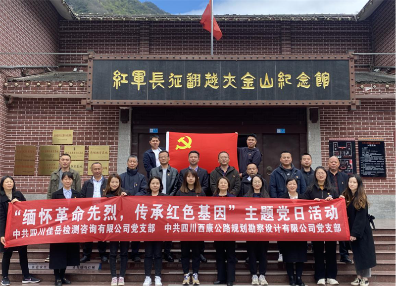 清明憶先烈,春風送哀思。為大力弘揚英烈精神,銘記光輝歷史,深切緬懷革命烈士、英雄人物,引導黨員干部進一步堅定理想信念、初心使命,賡續(xù)共產(chǎn)黨人精神血脈。4月4日,交建集團機關(guān)黨支部、勘察設(shè)計黨支部、佳岳檢測黨支部到寶興縣紅色紀念館開展了“緬懷革命先烈 傳承紅色基因”主題黨日活動。本次主題黨日活動,采取現(xiàn)場教學、微黨課、敬意教學等形式進行。