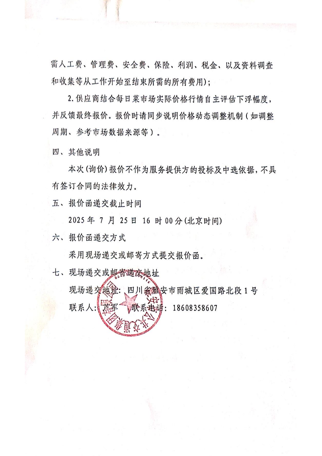 關于雅安市公共交通集團有限公司食堂農產品配送服務采購限價的詢價函