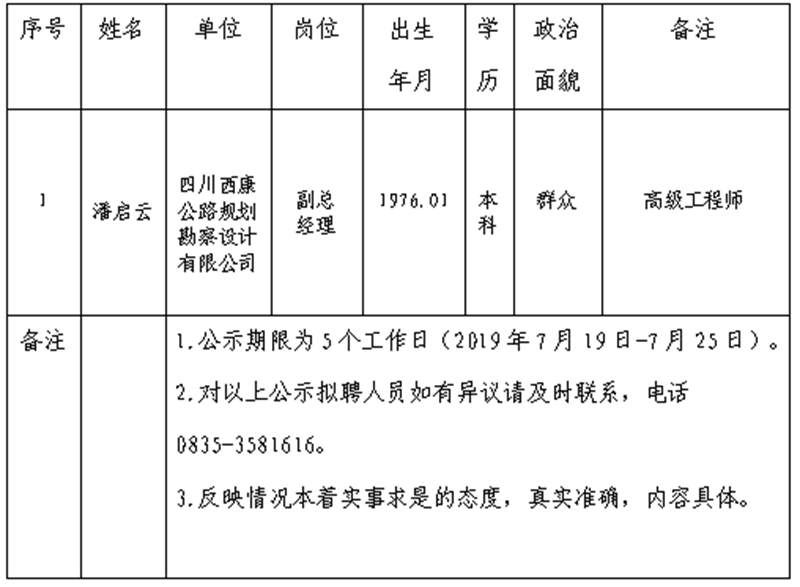 雅安交建集團(tuán)子公司擬聘用人員公示 (勘察設(shè)計(jì)公司)