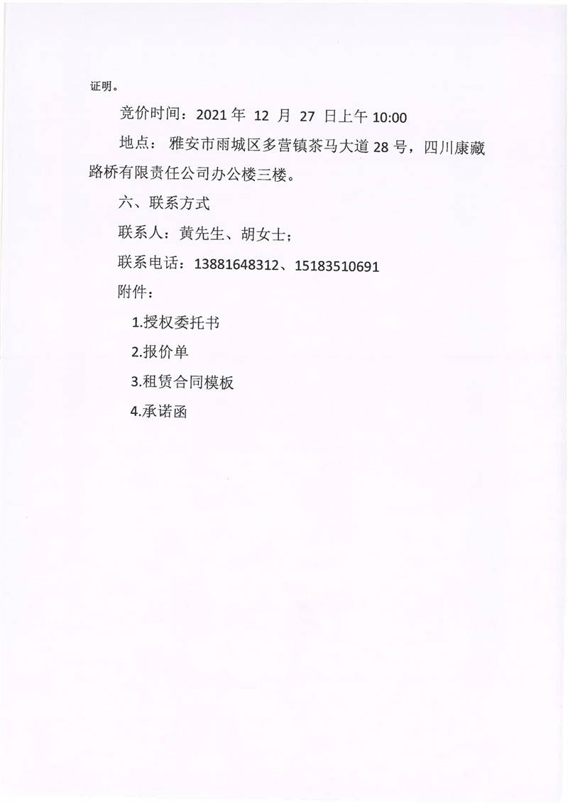 四川康藏路橋有限責(zé)任公司關(guān)于雅安市雨城區(qū)多營鎮(zhèn)茶馬大道28號三樓9間辦公用房招租的公告
