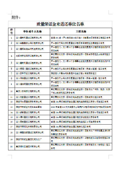 附件:質(zhì)量保證金未退單位名單
