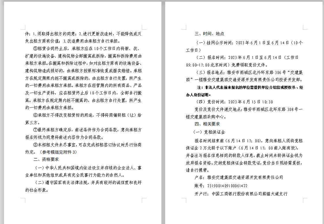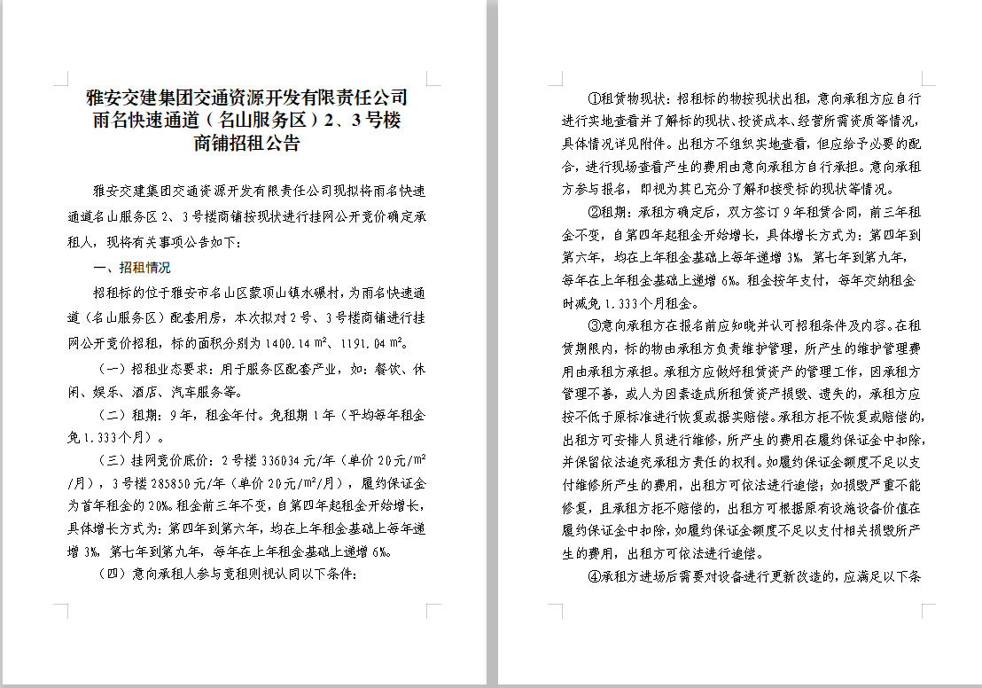 交通資源開發(fā)公司雨名快速通道(名山服務(wù)區(qū))2、3號(hào)樓商鋪招租公告附件