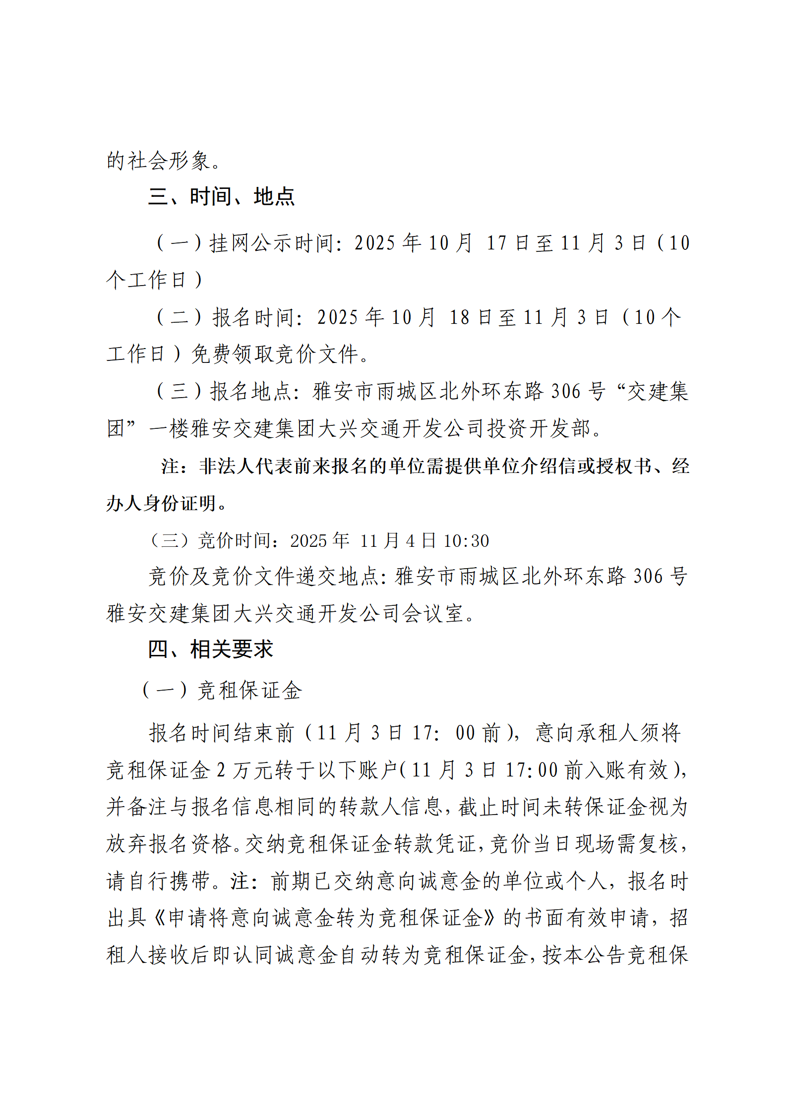 雅安交建集團大興交通開發(fā)公司 雅安市城市綜合停車場姚橋綜合停車場及配套用房招租公告