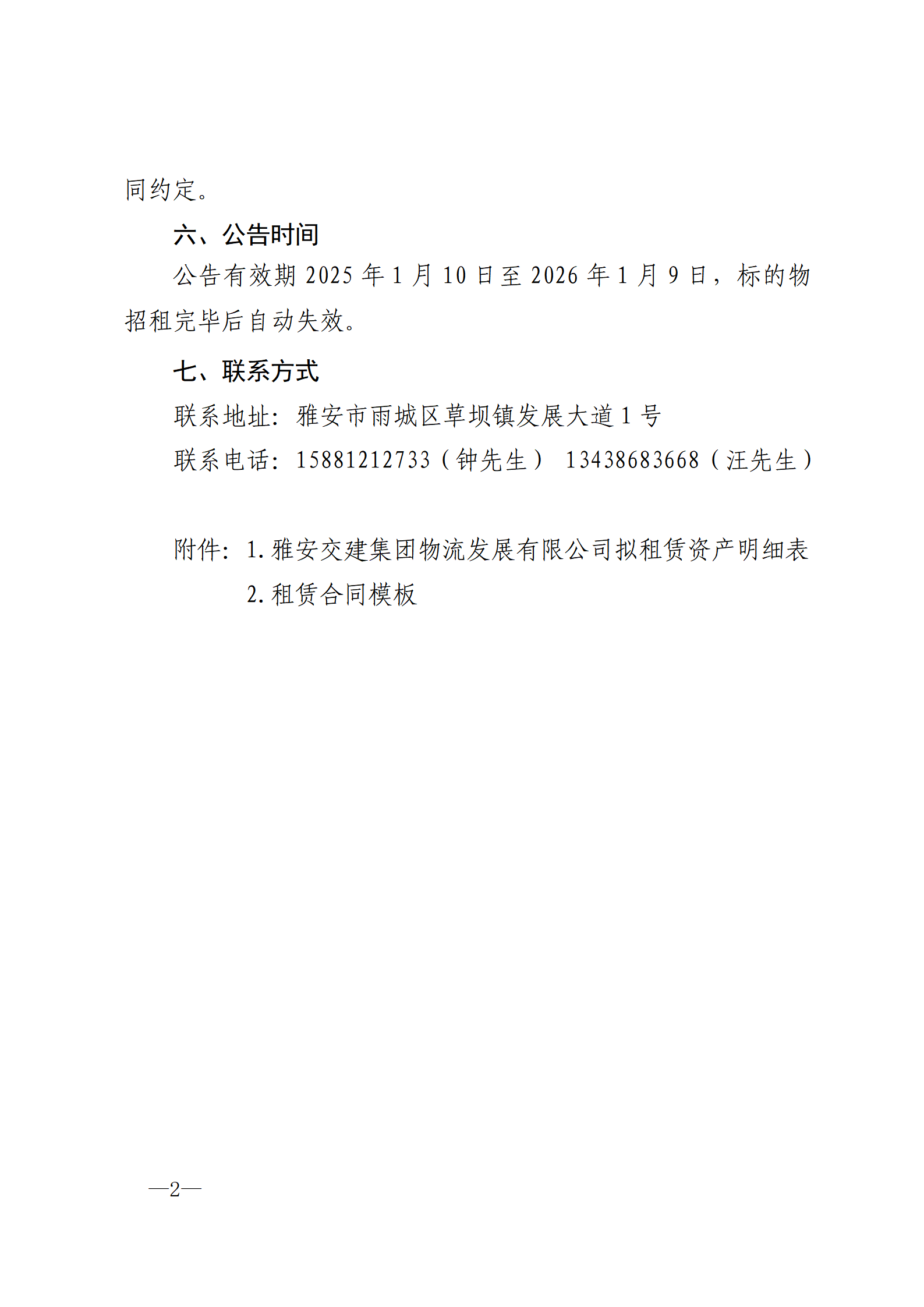 雅安交建集團(tuán)物流發(fā)展有限公司 關(guān)于房屋、場地、倉庫公開招租的公告