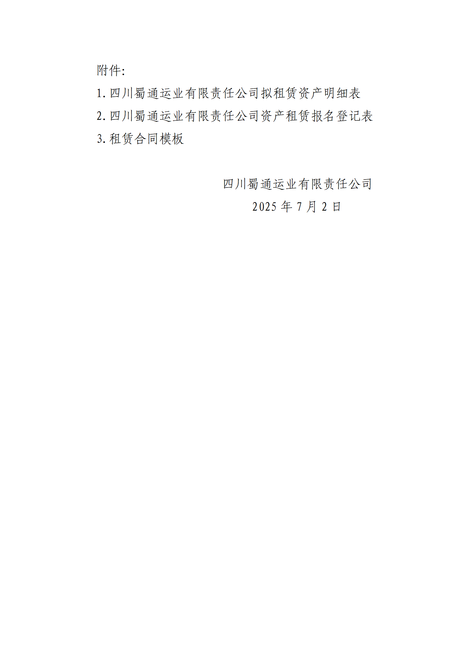 四川蜀通運(yùn)業(yè)有限責(zé)任公司 關(guān)于康藏路61號(hào)附1號(hào)門面、康藏路85號(hào)場地兩處資產(chǎn)進(jìn)行掛網(wǎng)招租的公告