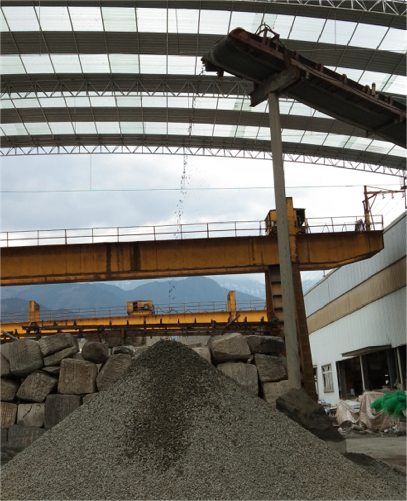3月14日下午15:00時,第一車施工棄渣從寶興縣靈關鎮(zhèn)代碑寺施工現(xiàn)場運抵興寶投資公司委托加工合作企業(yè)——寶興縣健迅石材廠。棄渣投入料倉后,經(jīng)過顎破、圓錐破、沖擊破三次破碎后,掉落在地面,這標志著興寶公司與寶興縣健迅石材廠委托加工合作正式啟動。