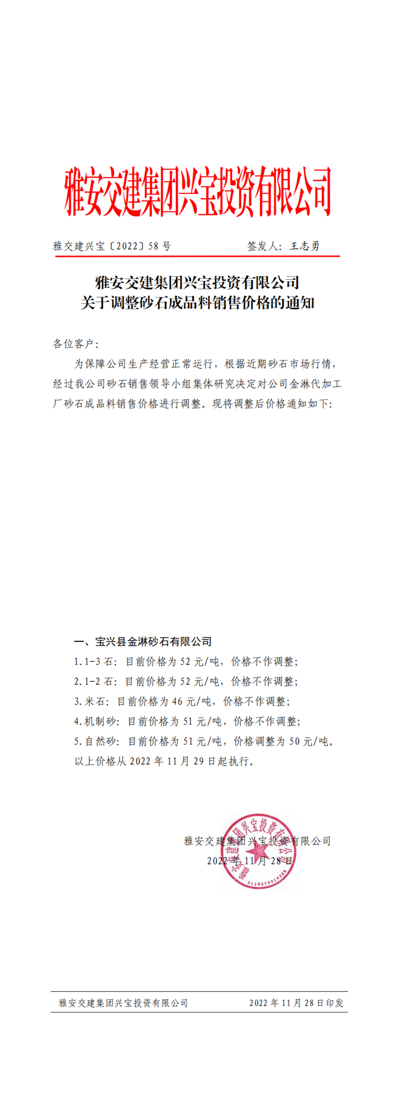 ÑŽ»½¨ÅdŒš¡²2022¡³58Ì–(h¨¤o) êP(gu¨¡n)ÓÚÕ{(di¨¤o)Õûɰʯ³ÉÆ·ÁÏäN(xi¨¡o)ÊÛƒr(ji¨¤)¸ñµÄ֪ͨ