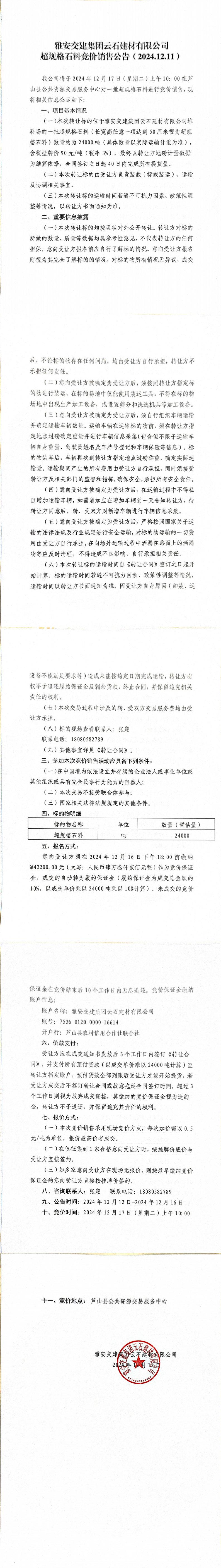 雅交建云石建材有限公司超規(guī)格石料競價銷售公告(2024.12.11)